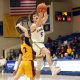 Canistota’s Tyce Ortman, left, goes up with the ball as Aberdeen Christian’s Kaden Clark, right, defends during Thursday’s game at the South Dakota Class B Boys Basketball Tournament at Wachs Arena. photo by John Davis