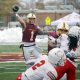 Aberdeen Central’s Sam Rohlfs (10) throws a pass as teammate Jacob Merxbauer, foreground right, runs down field during Friday’s game against Douglas at the Hub City Bowl at Swisher Field. In on the play for Douglas is Payton DeWitt (6). Rohlfs connected with Merxbauer on the play for a touchdown. Photo by John Davis taken 8/27/2021