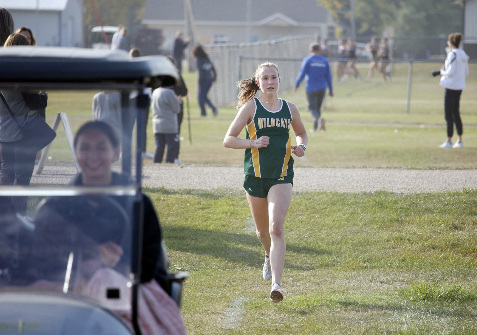Northwestern’s Ella Boekelheide competes at the Lake Region Conference Cross Country Meet last season in Ipswich. Boekelheide won the Redfield Invitational on Thursday. Photo by John Davis taken 10/9/2024