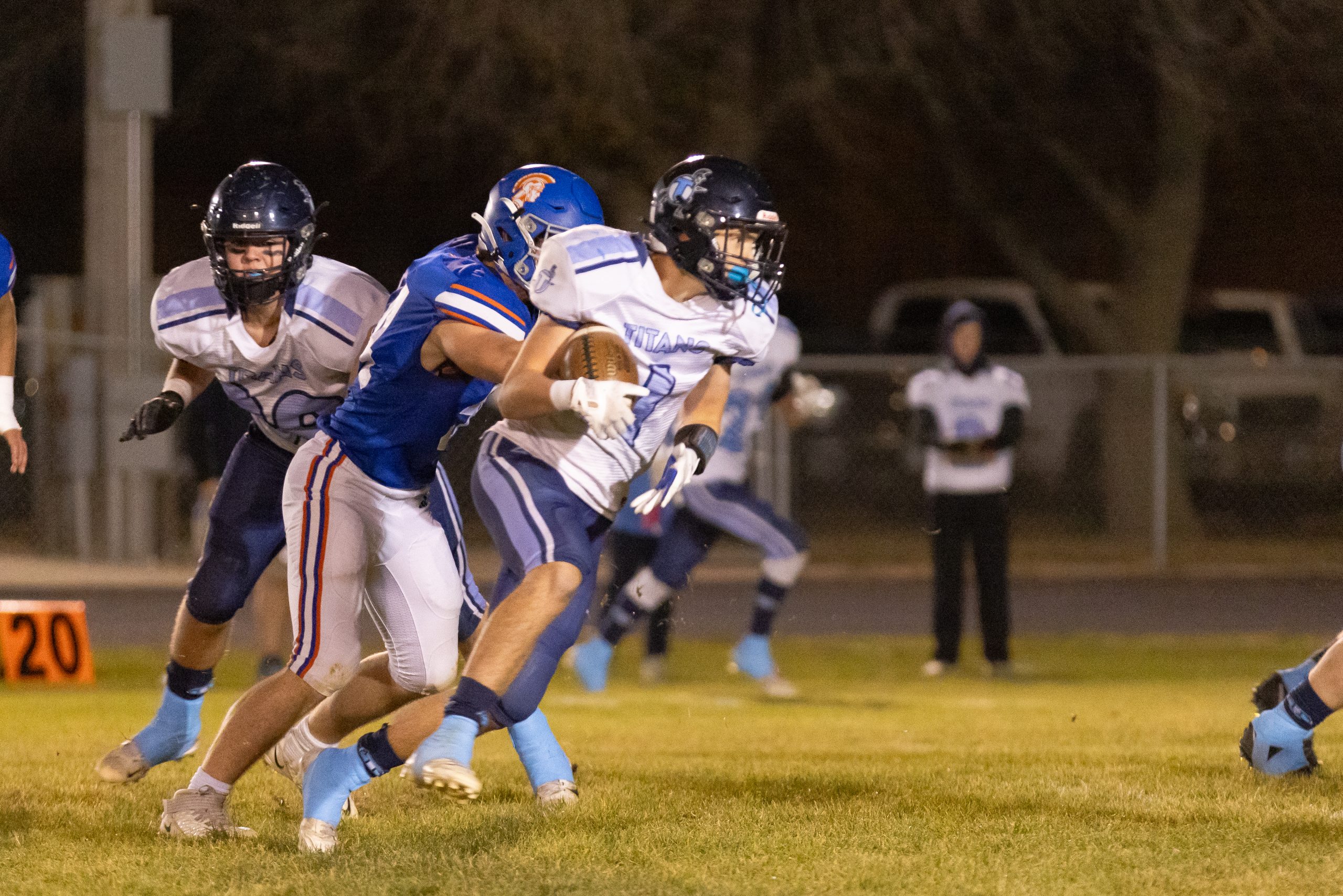 DEFENSE: Warner, Williams 3 tackles 5 assists, Baum 3 tackles 4 assists 1 INT, Nick Bakeberg 2 tackles 8 assists; Faulkton, Melius 9 tackles 1 assist 2 tackles for loss, Baloun 4 tackles 5 assist 1 sack 1 tackle for loss, Mueller 1 sack, Thomas Summers 1 sack, Coyle 2 INT.