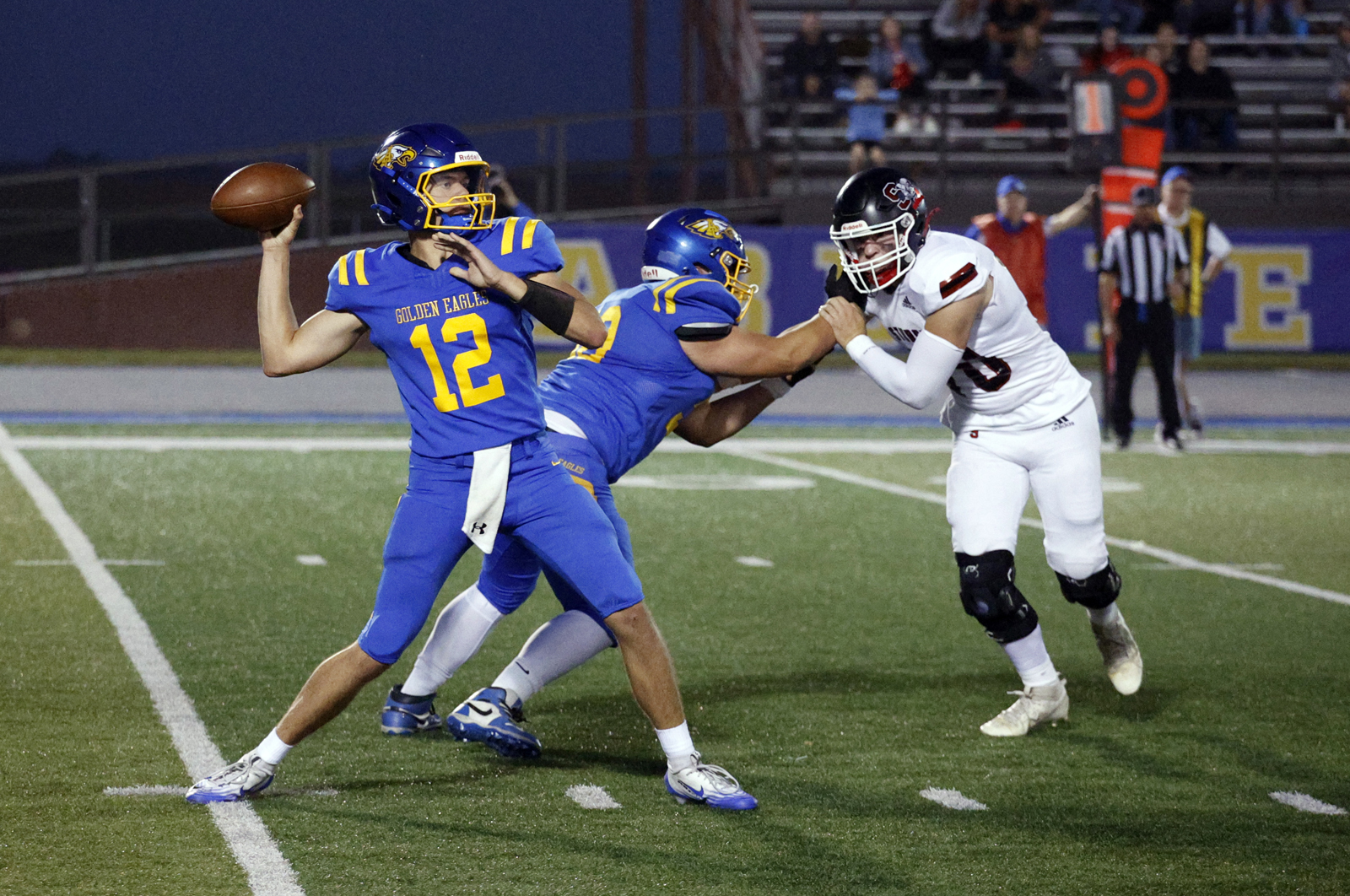 Jackson Board added an interception return for a touchdown and Borge picked up his second TD of the night on a 57-yard pass from Brayden Bowman in the second quarter, and by halftime the Golden Eagles had rattled off 28 unanswered points and were in complete control.