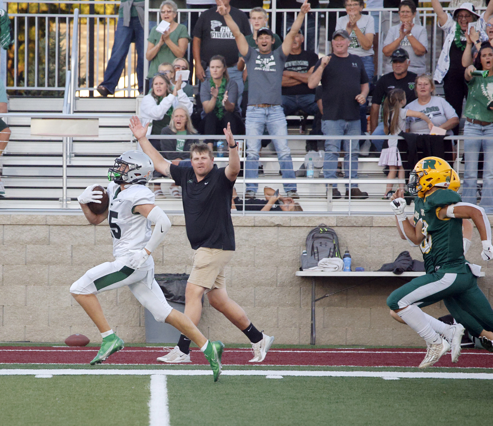 D β Oliver Fieber 80 kickoff return (Kloos run).