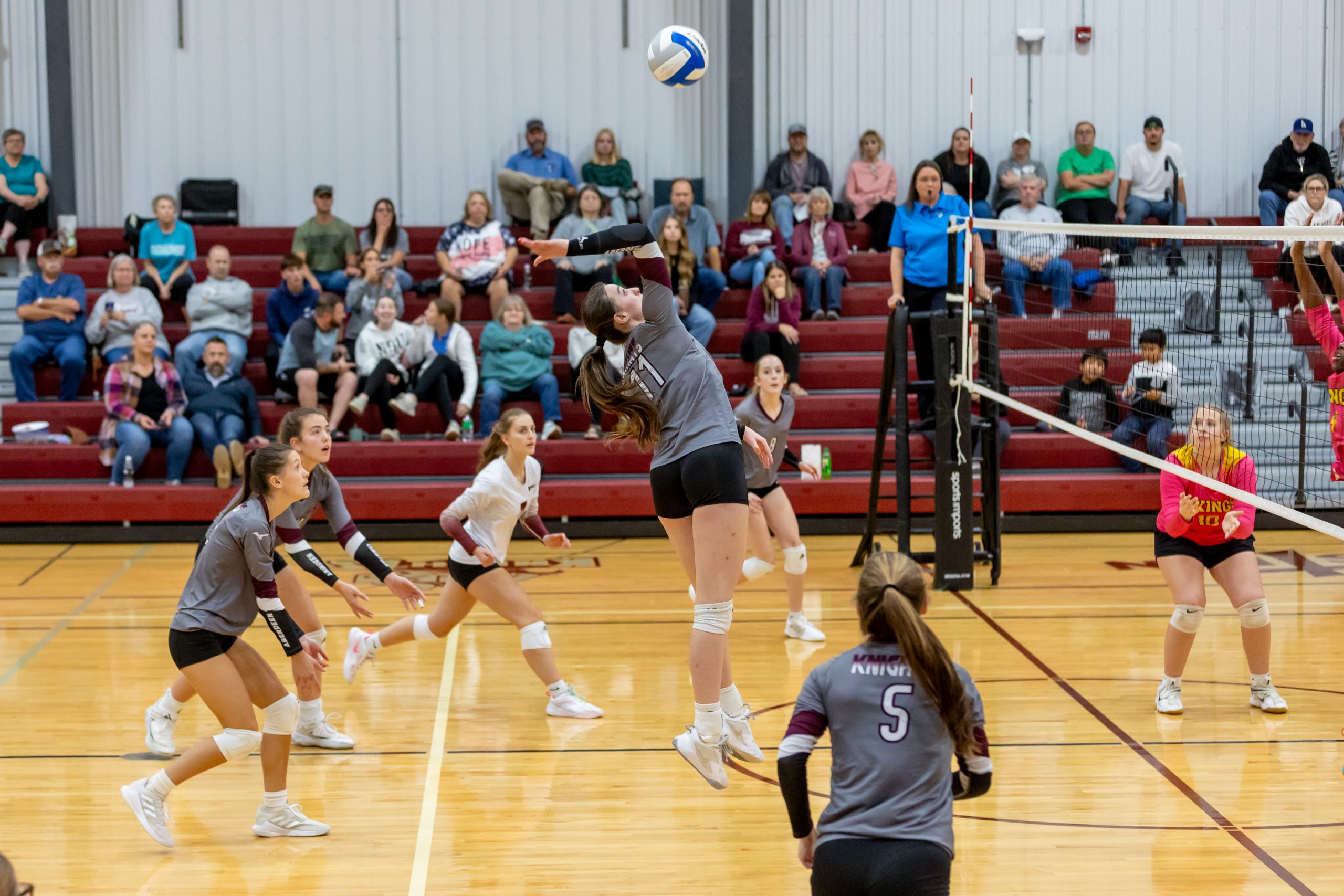 The Knights got off to a hot start from the get-go, producing a 14-point run in the opening set, taking advantage of numerous James Valley Christian mistakes.