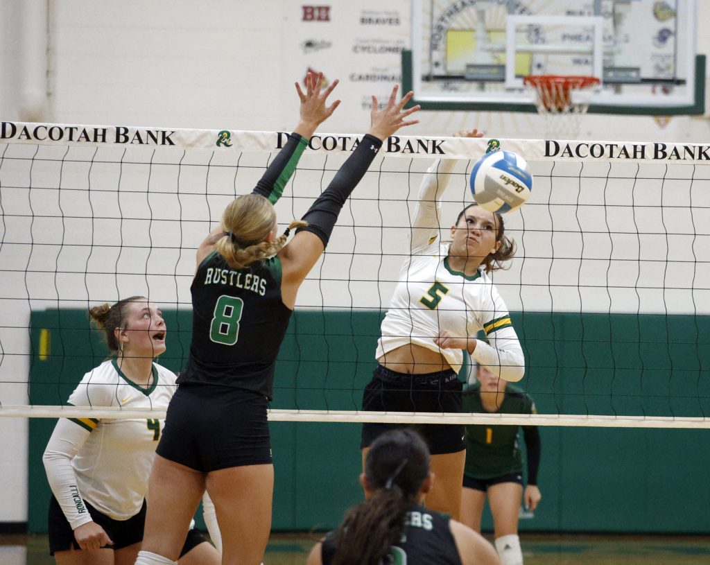 Hitting: Warner 101-115 42 kills (MaKenna Leidholt 37-43 17 kills, Jung 21-22 7 kills, C. Leidholt 29-32 6 kills); Aberdeen Roncalli (Jillian Ellwein 8 kills, Karsyn Davis 8 kills, Rylee Voeller 6 kills, Gabby Thomas 4 kills).