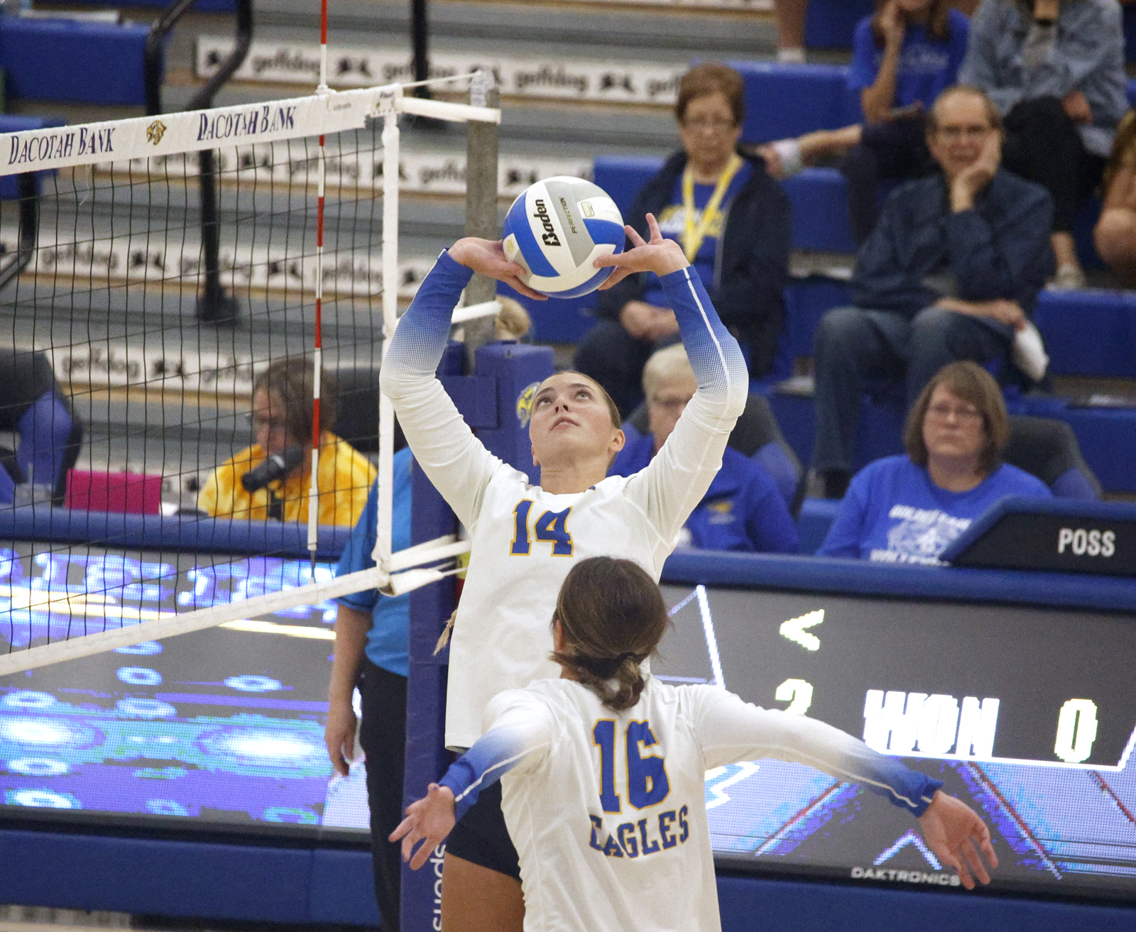 Lauryn Burckhard had 18 kills and 16 digs, while Kenadi Withers notched seven kills. Amelia Rife finished with five kills and two blocks from the middle. Taylin Kleffman had 19 digs to pace the Golden Eagles in that category.