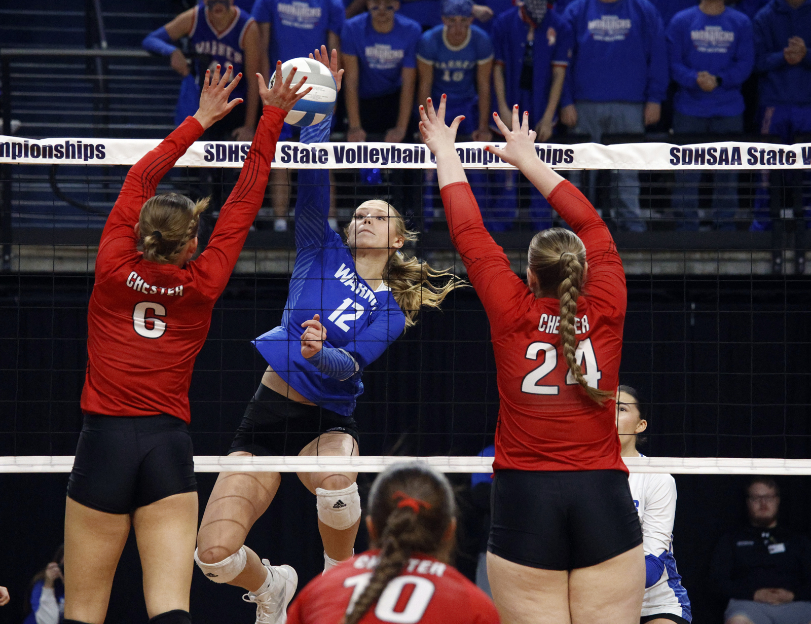 Blocks: Warner 4 assists (Olivia Marcuson 2, Makenna Leidholt 2); Chester Area 1 solo 16 assists (E. Val Hal 1 solo1 assist, Katelyn Schut 6 assists, Emilie Bleeker 5).
