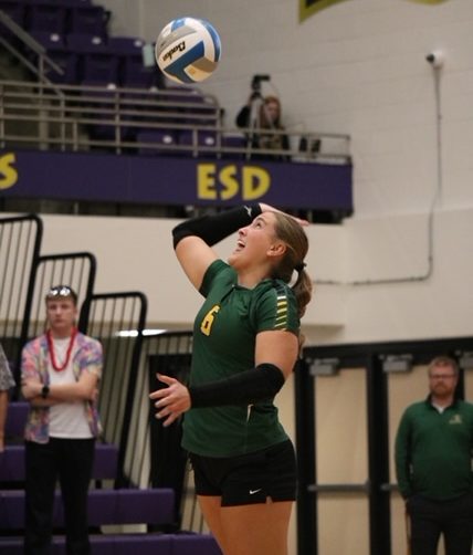 Hitting: Aberdeen Roncalli (Karsyn Davis 10 kills, Grace Cogely 6 kills, Jillian Ellwein 5 kills, Voeller 5 kills); Clark-Willow Lake 104-114 (Shelby Begeman 20 kills, Ella Sass 9 kills, Eliza Larson 6 kills).