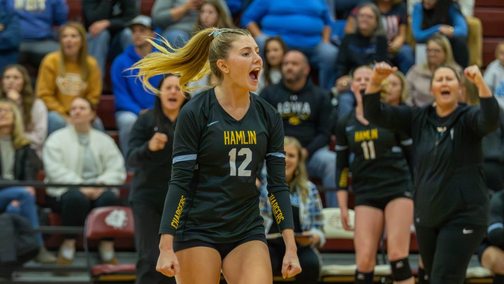 Hitting: Hamlin 47 kills (A. Neuendorf 14 Addie Jensen 14, Jade Thue 12).