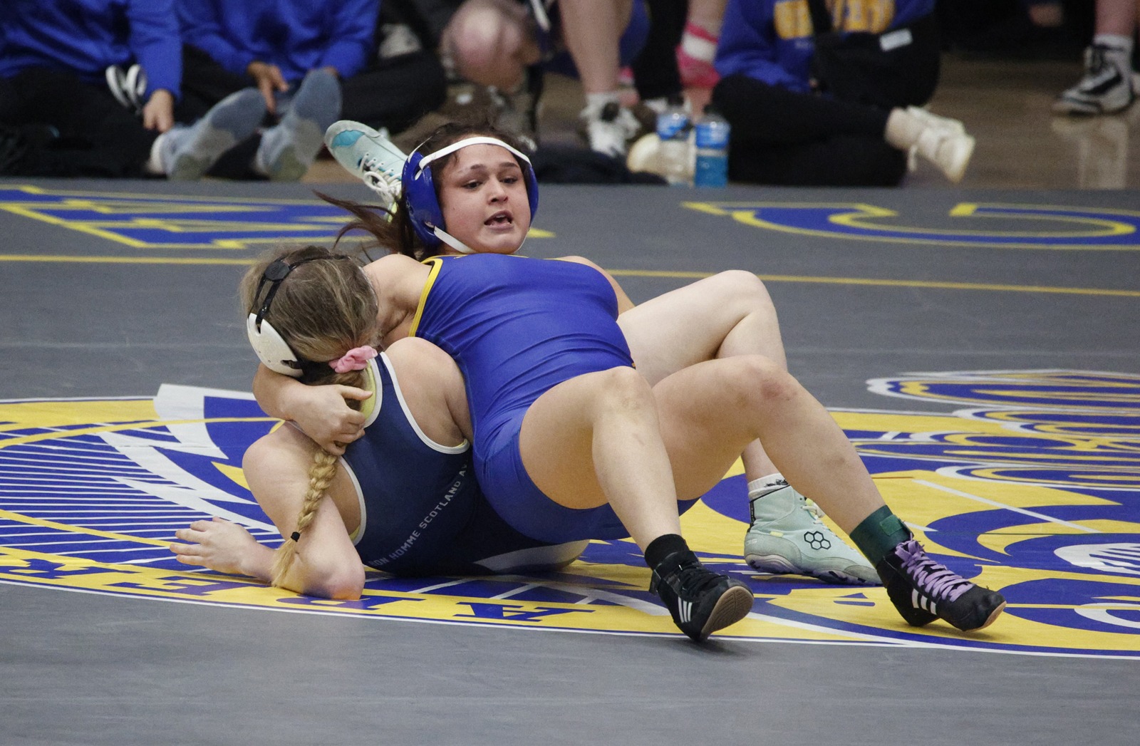 Semifinals – Lilly Nelson (Aberdeen Central) over Nevaeh Schanbeck (Watertown) (Dec 5-2)