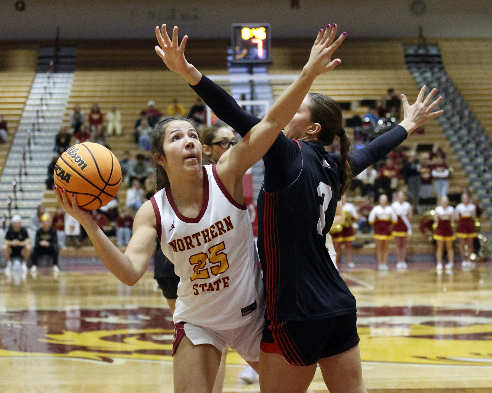 In a tight game, it was Moore’s 27th and 28th points that really stood out as she pulled up in the paint and nailed a shot to help Northern take a 66-62 lead with 12 seconds remaining.