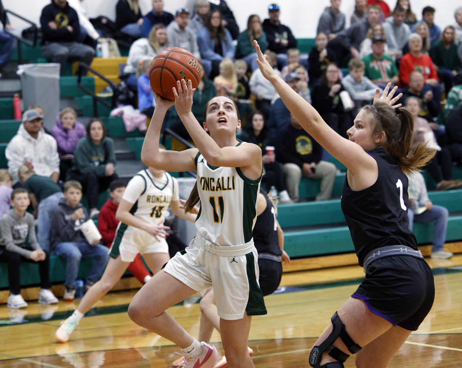 With Roncalli holding a 38-31 lead, Larson called timeout with 5:28 remaining. When play resumed, Claire Crawford nailed a 3-pointer and then scored on a floater on Roncalli’s next possession to give the Cavaliers a 43-33 advantage.