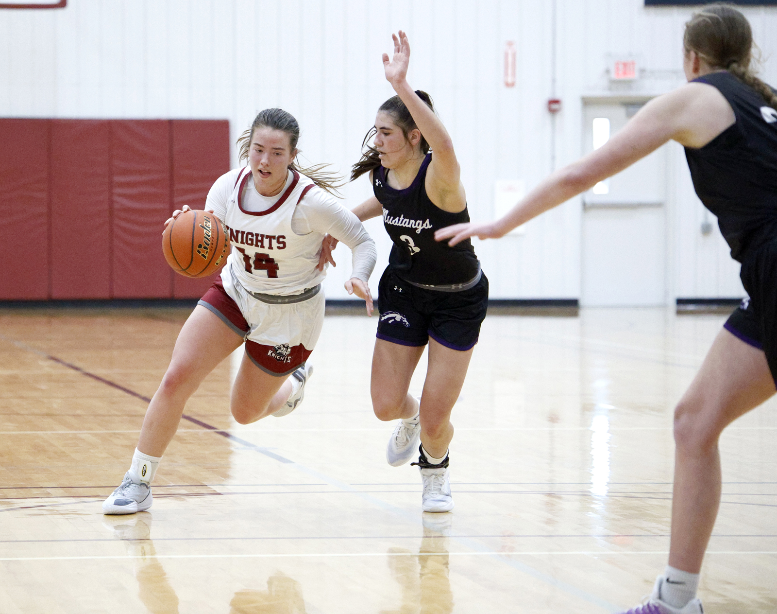 “’Soph’ is one of our better players, so it was fun to see her hit her first varsity 3-pointer, so that was a plus,” said Knights coach Matt Rohrbach. “I thought we got some really good shots early, we just didn’t get a lot to go and then it was kind of nice when she hit that.”