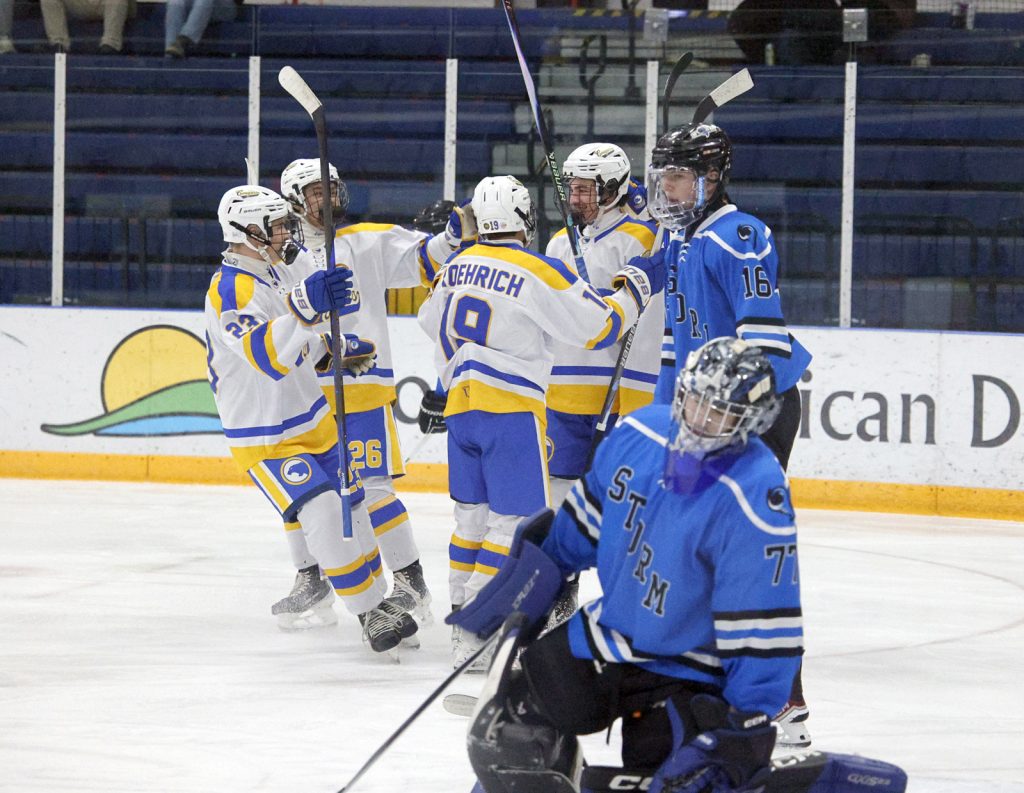 First Period: 1, AC, Carter Vilhauer (Trayke Roehrich), 16:20; 2, AC, Paxton Dallmann (Roehrich), 13:24; 3, AC, Vilhauer (Briggs Medill), 10:21; 4, Medill (Jace Byram, Roehrich), 2:55; 5, AC, Dallmann (Roehrich), 1:10;