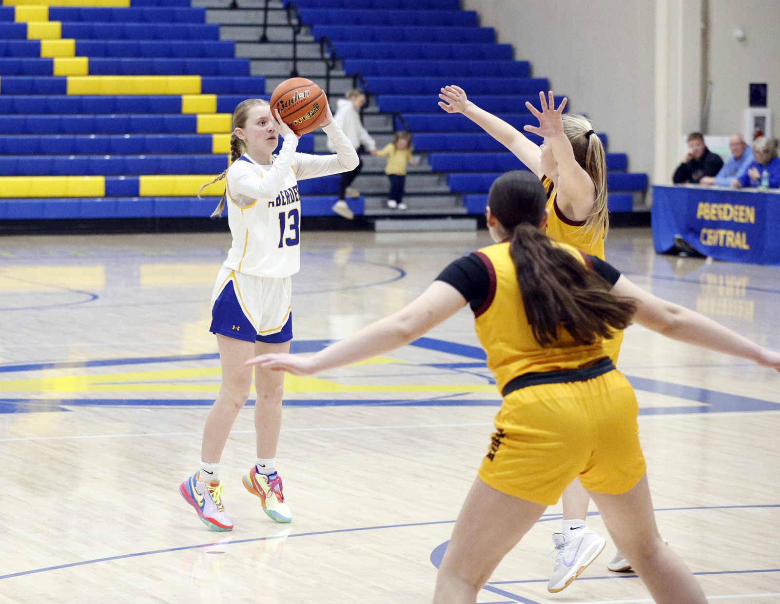 ABERDEEN CENTRAL (8-2): Kenadi Withers 2 2-3 6, Julia Malsam 3 2-2 10, Camryn Abrecht 1 0-0 2, Ella Swanson 1 0-0 1, Emma Dohrer 2 2-4 7, Lauryn Burckhard 3 1-4 7, Taryn Hermansen 7 3-4 17. Totals 19 10-17 55.