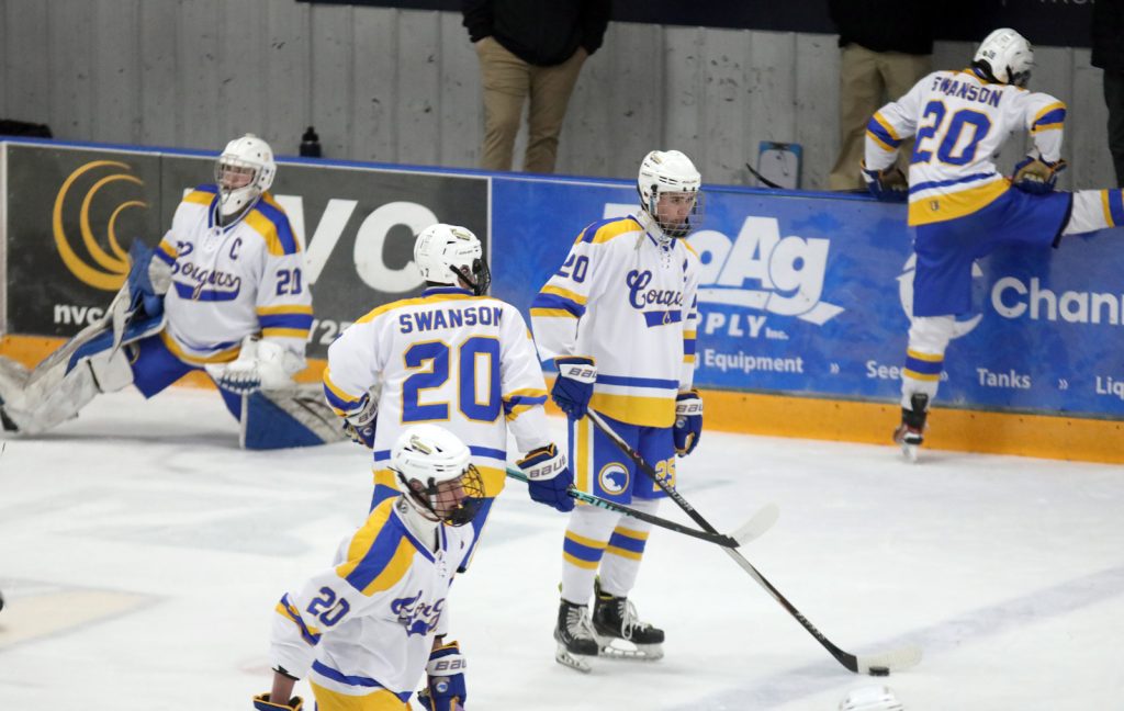 It was announced before the contest that Swanson will be the first Cougars player to be inducted into the South Dakota Hockey Hall of Fame this spring.