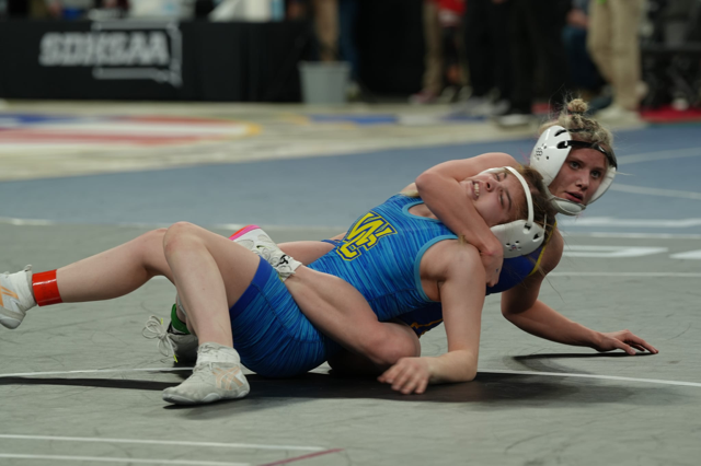 Two other area wrestlers advance to today’s championship matches. Defending state champion Liza Krueger of Groton will compete for the title at 105, while Cateri Yellow Hawk of Sully Buttes will compete in the finals at 130 pounds.