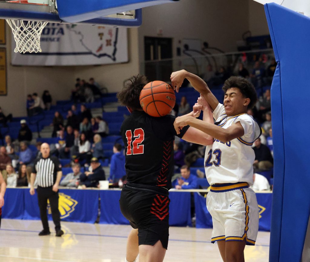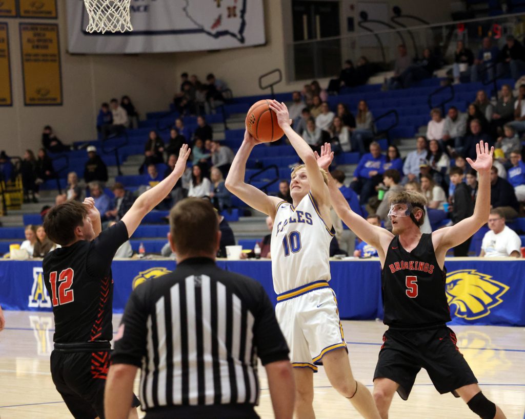 SIOUX FALLS – Mobridge-Pollock’s Blake Thompson led the Blue team with 24 points during...