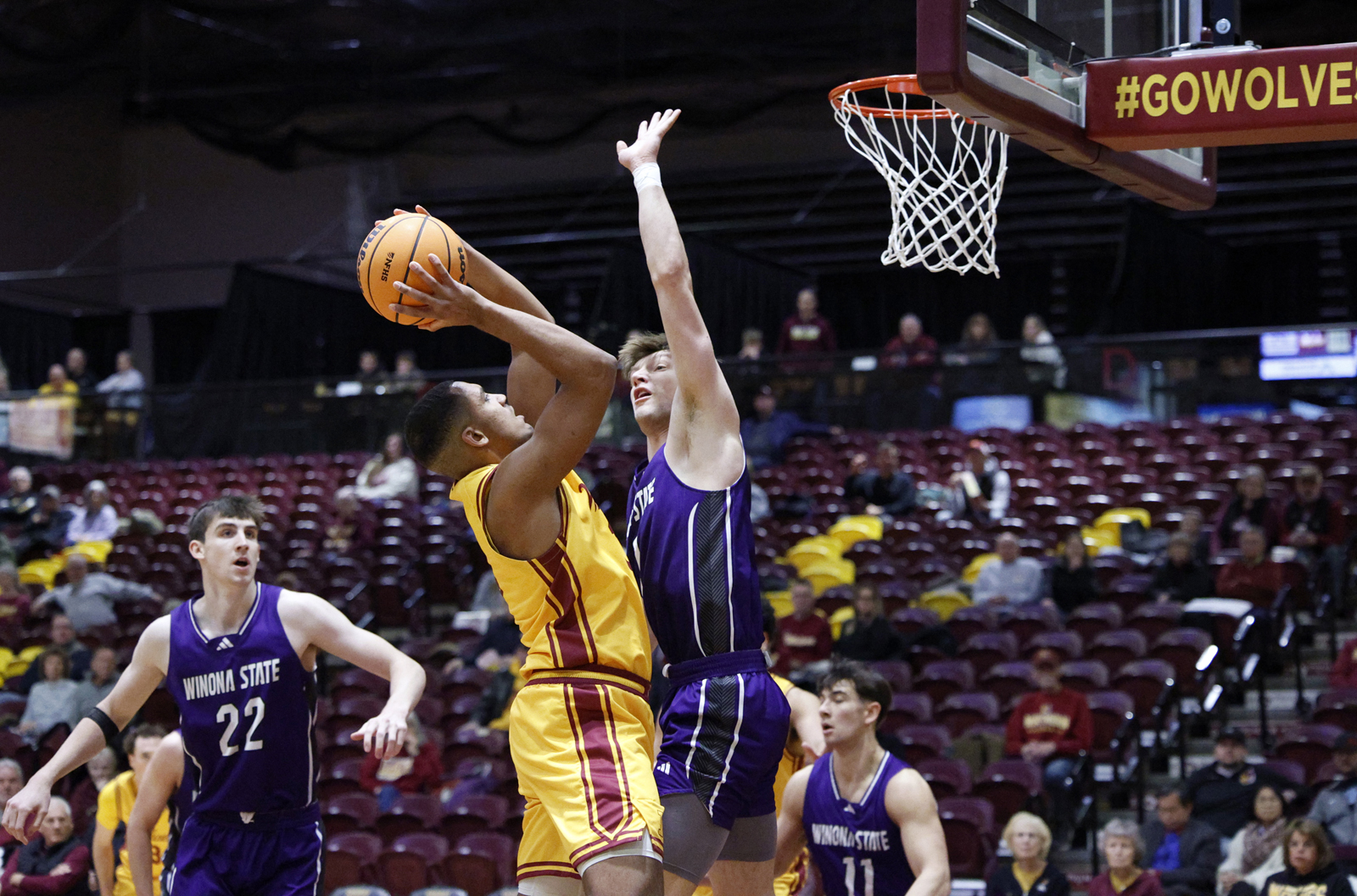 Joshua Book scored eight of his 12 points during the final run, as the Wolves improved to 9-8 in NSIC action.