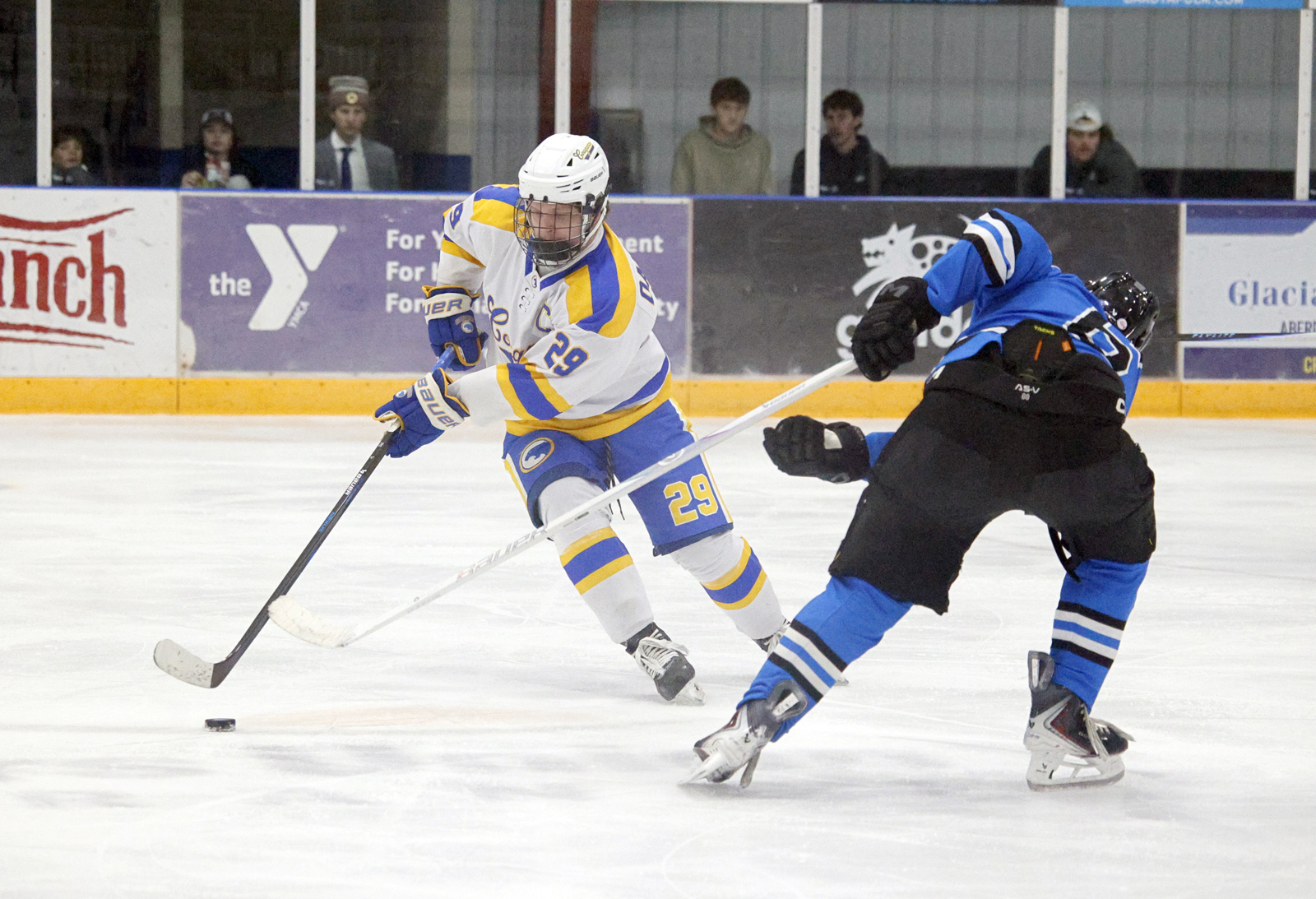 After falling behind 1-0 in the opening period, Aberdeen exploded for five goals in the second period. Jaxson Danielson had a pair of goals in the stanza, while Carter Vilhauer, Paxton Dallmann, and Logan Fischbach each found the back of the net once.