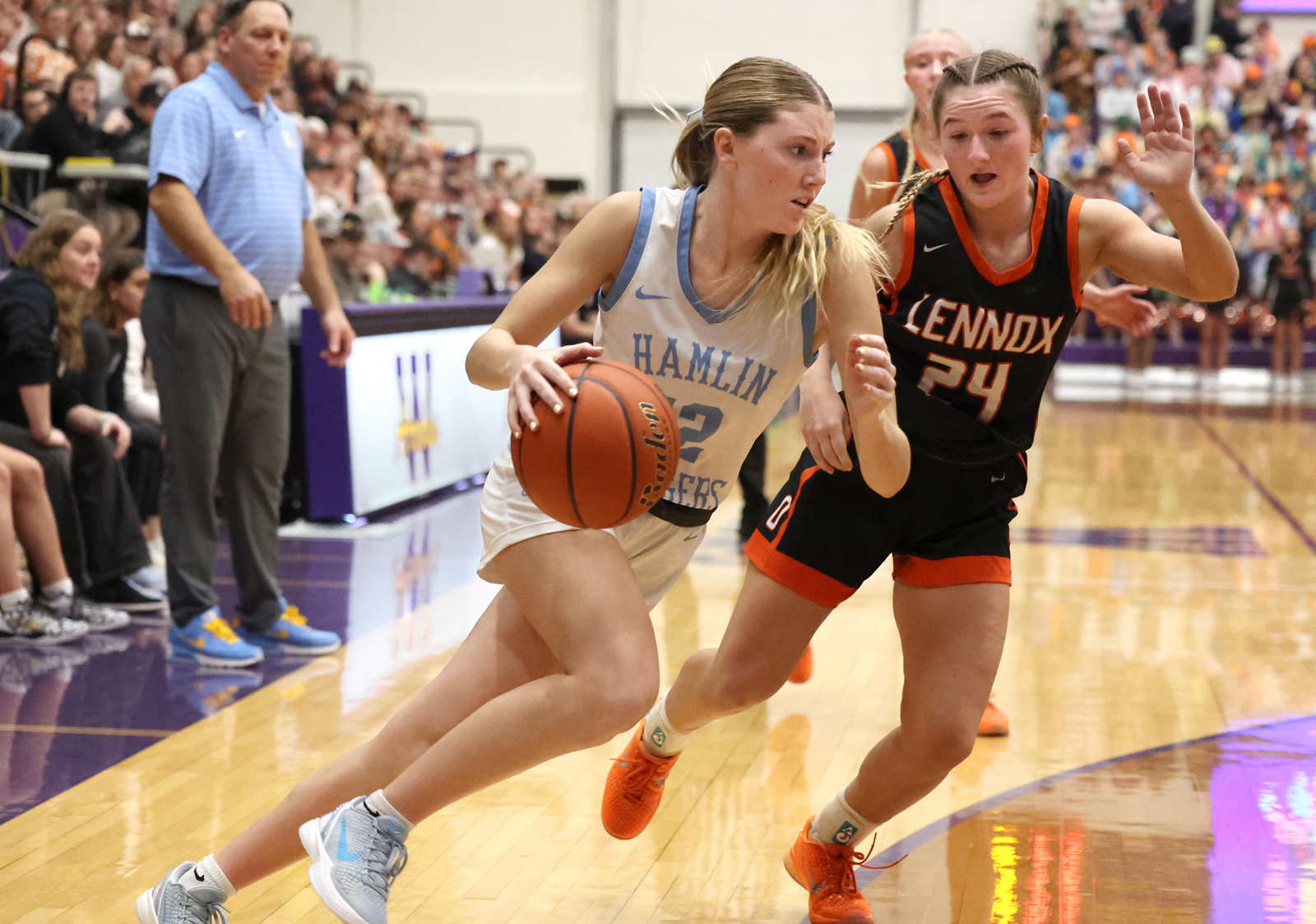 “We weren’t expecting them to play zone, so we kind of prepared for them to play man,” said Hamlin’s Issie Steffensen, “and we just didn’t adjust very well or very quickly.”