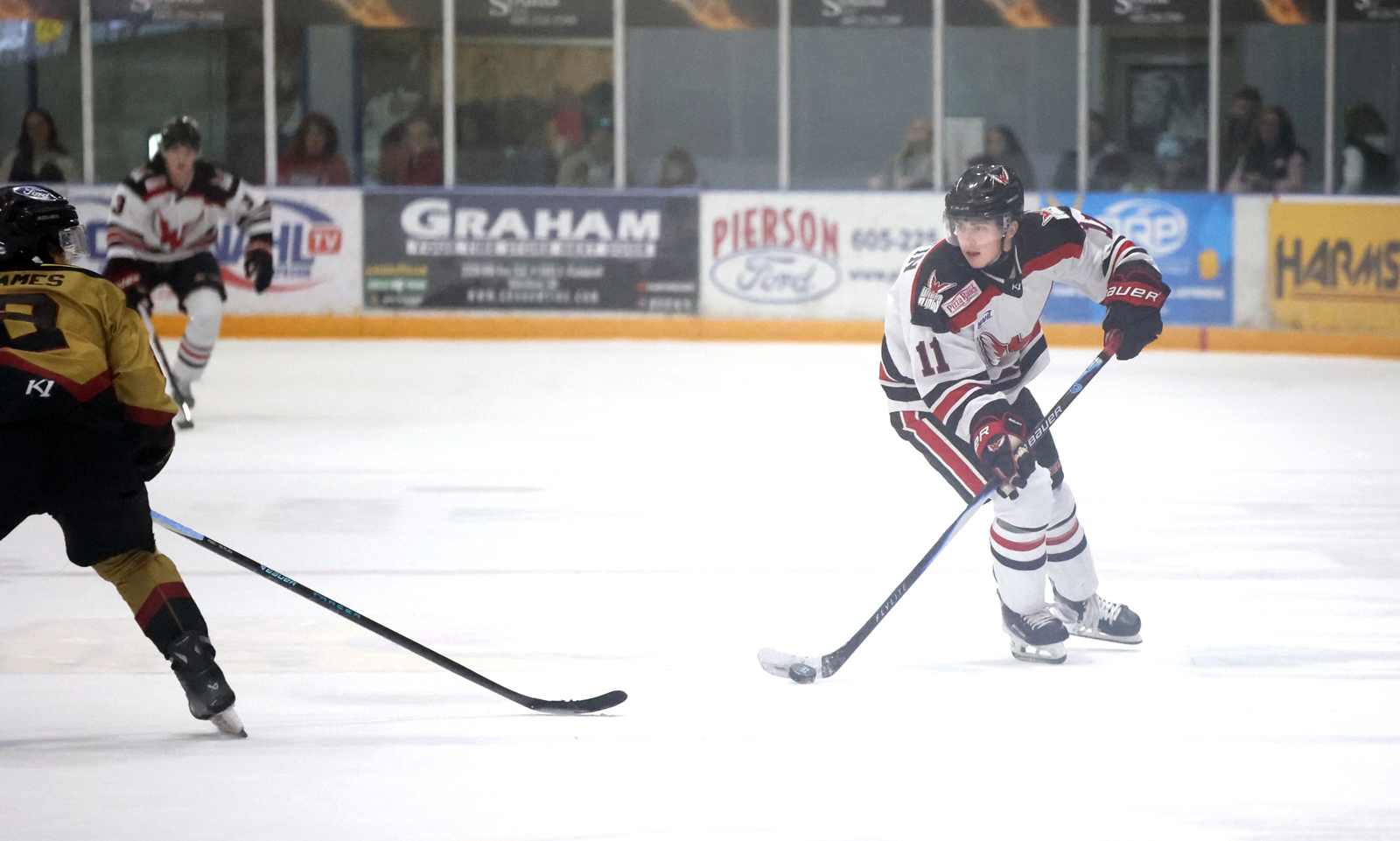 BISMARCK, N.D. – The Aberdeen Wings defeated Bismarck 4-1 in NAHL hockey action Saturday night to cap a key sweep over the Bobcats. The Wings still trail Bismarck in the Central Division standings, but gained three points over the weekend, including a shootout win on Friday.