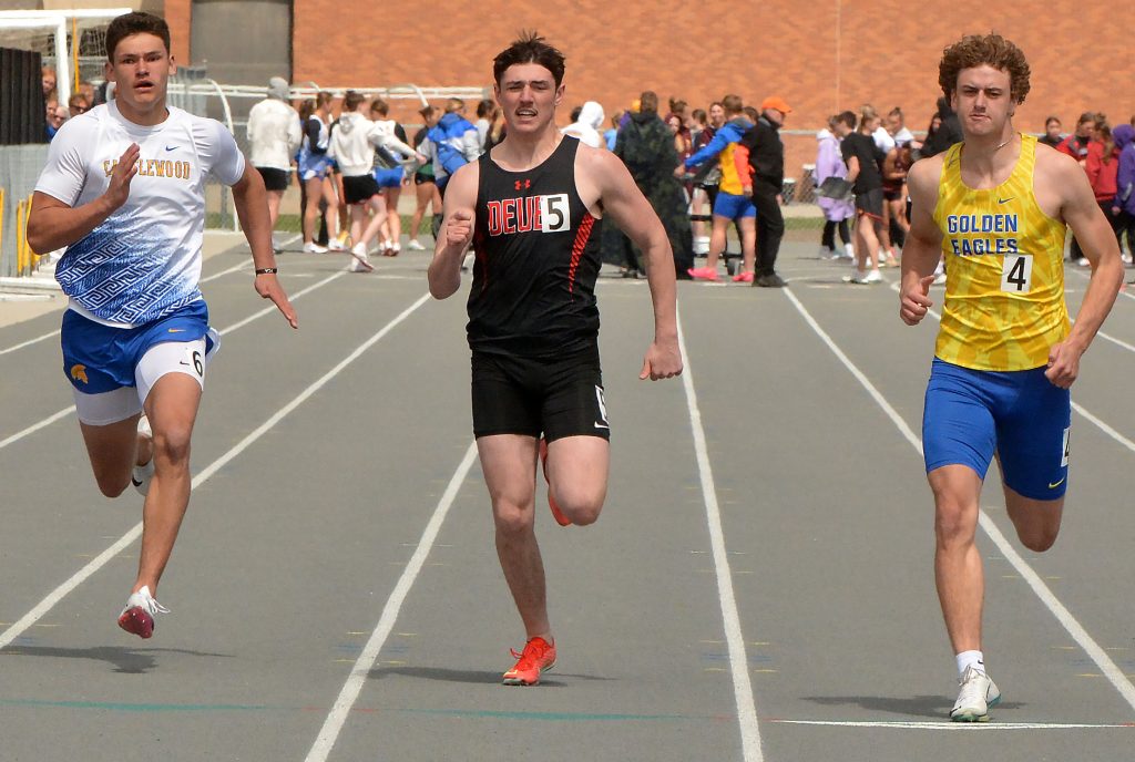 Karson Borge won the 100-meter and 200-meter dashes, Tate DeVries won the 3,200-meter run, Jack Bertsch won the discus, and Evan Sichmeller finished second in the pole vault.