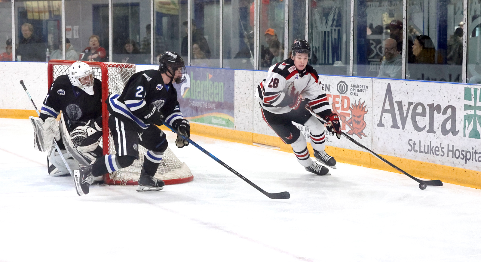 After Minot opened the scoring in the first period, Aberdeen scored back-to-back goals within 41 seconds of each other early in the second period to take the lead. David Hruby found the back of the net on assists from Herman Berggren and Jibber Kuhl. Less than a minute later Lucas Schaefer scored on assists from Keaton Weis and Hruby.